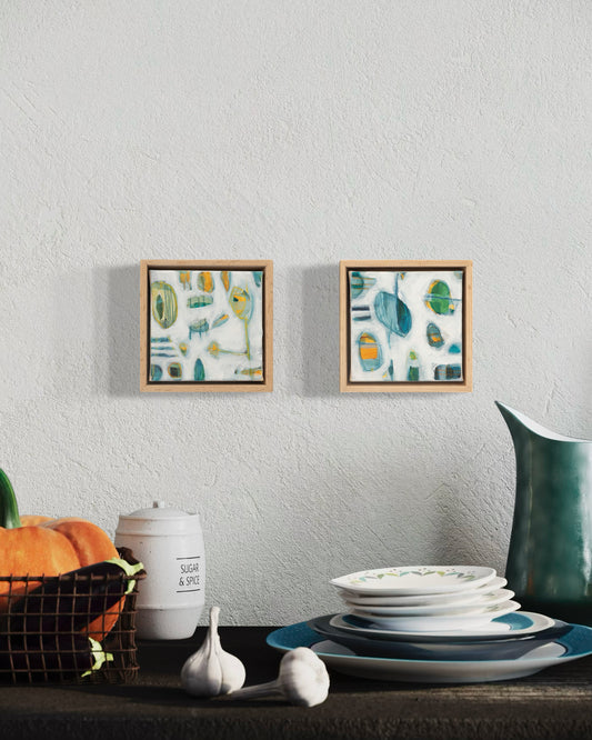 These layered works have evolved over many months, emerging through an intuitive process of mark-making and a responsive engagement with colour. The layers reflect my journey of connecting to the landscapes around me and distilling the essence of what I see and feel. Flashes of brightness symbolise those moments of insight and clarity that nature offers us unexpectedly, creating depth and movement within the calm. This ongoing dialogue between material and emotion creates a sense of depth and complexity in each piece, mirroring the dynamic cadence of nature itself.