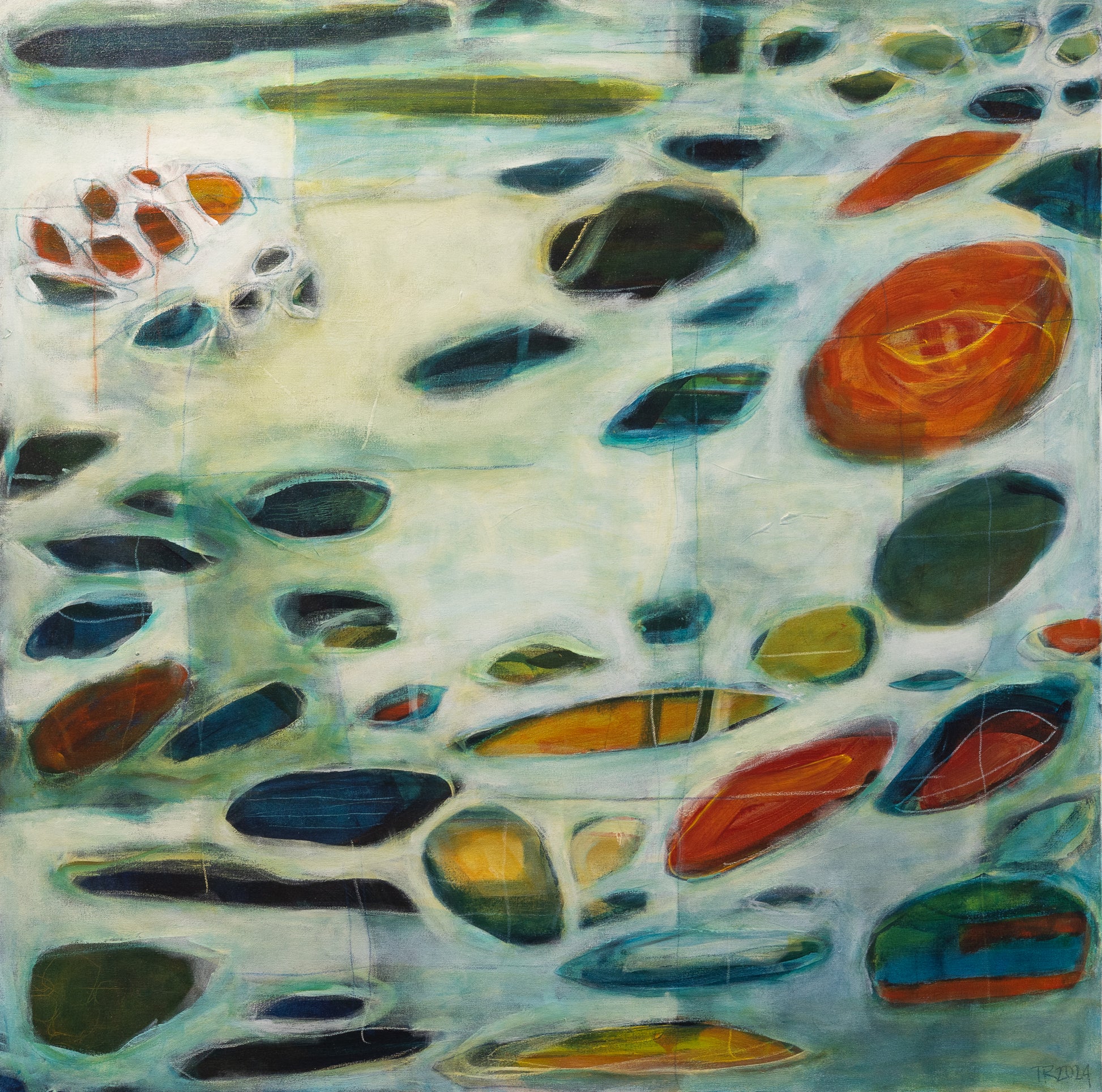 'Depths' (2024) is an original acrylic and mixed media painting on stretched canvas by Tamzin Rasmussen.