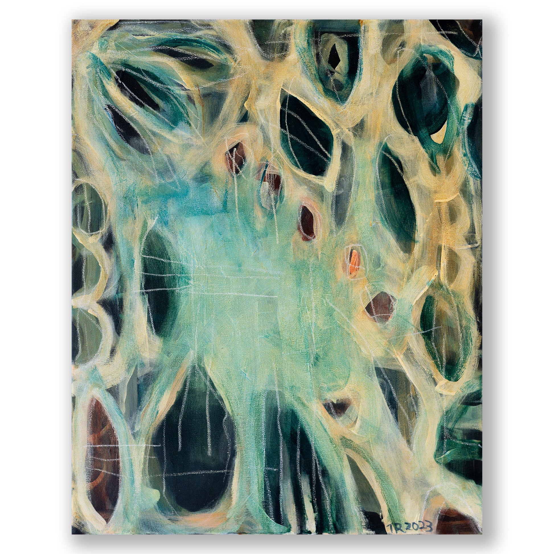 ’In The Kelp 1’ (2023) is an acrylic and mixed media painting on canvas by Tamzin Rasmussen