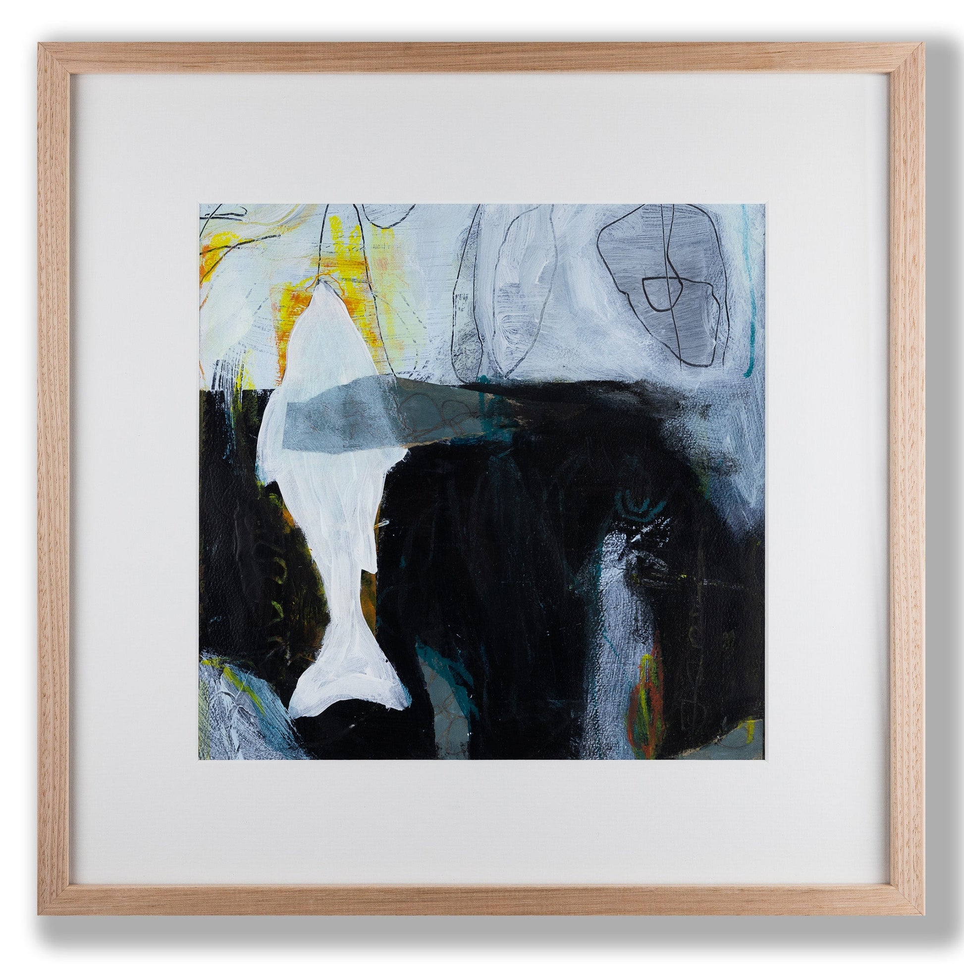 H 27cm x W 27cm, framed under glass with 5cm mat and oak frame, ready to hang.