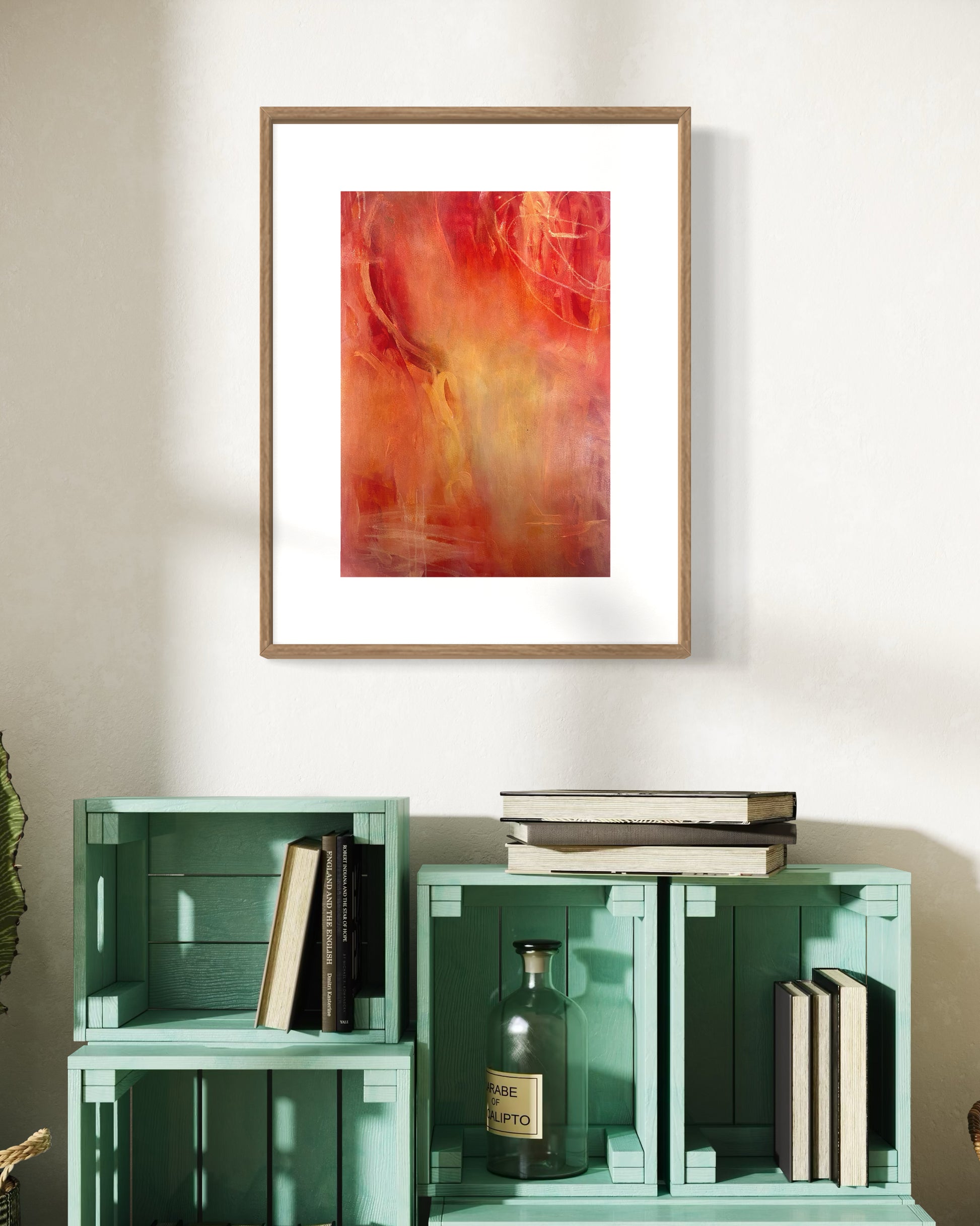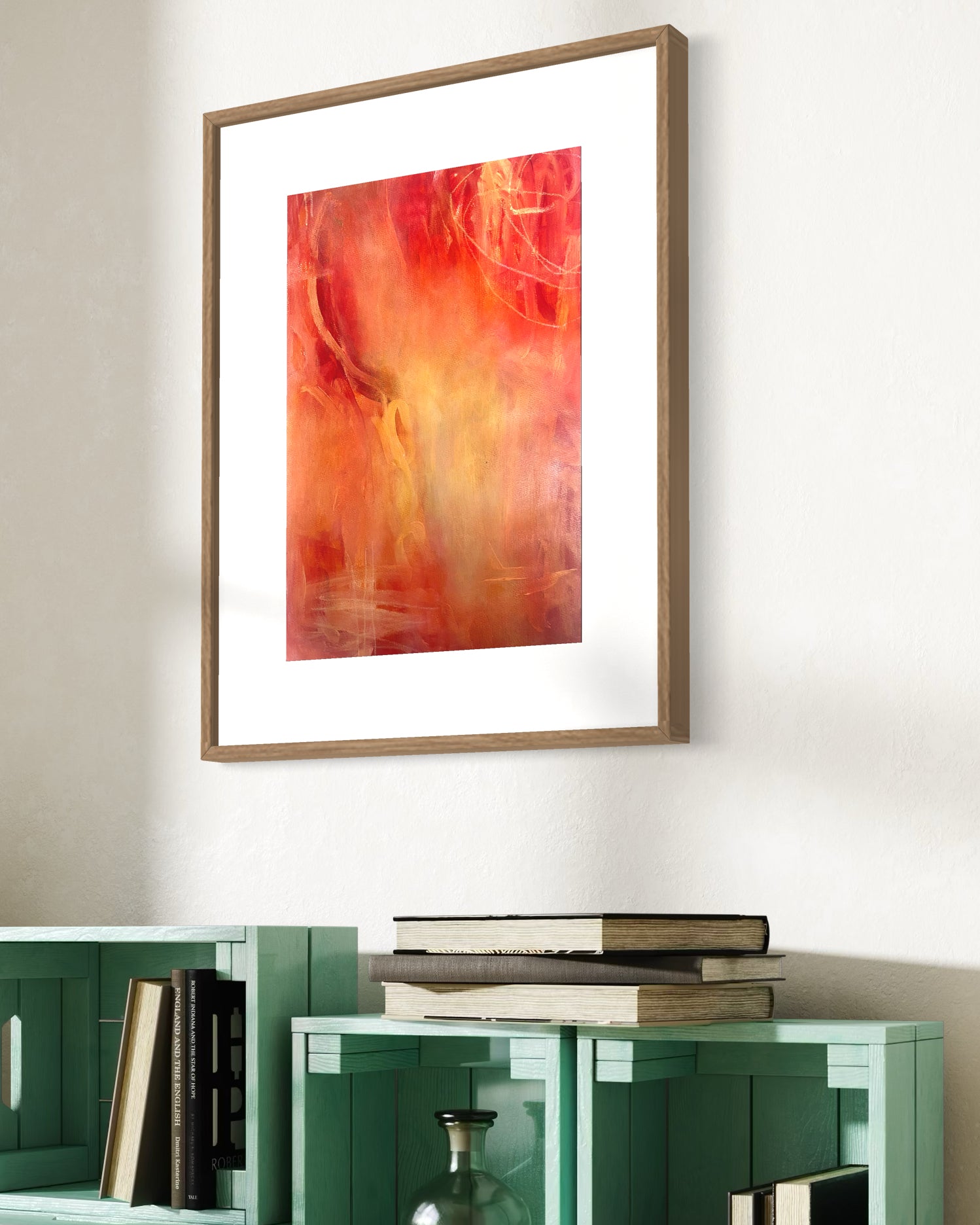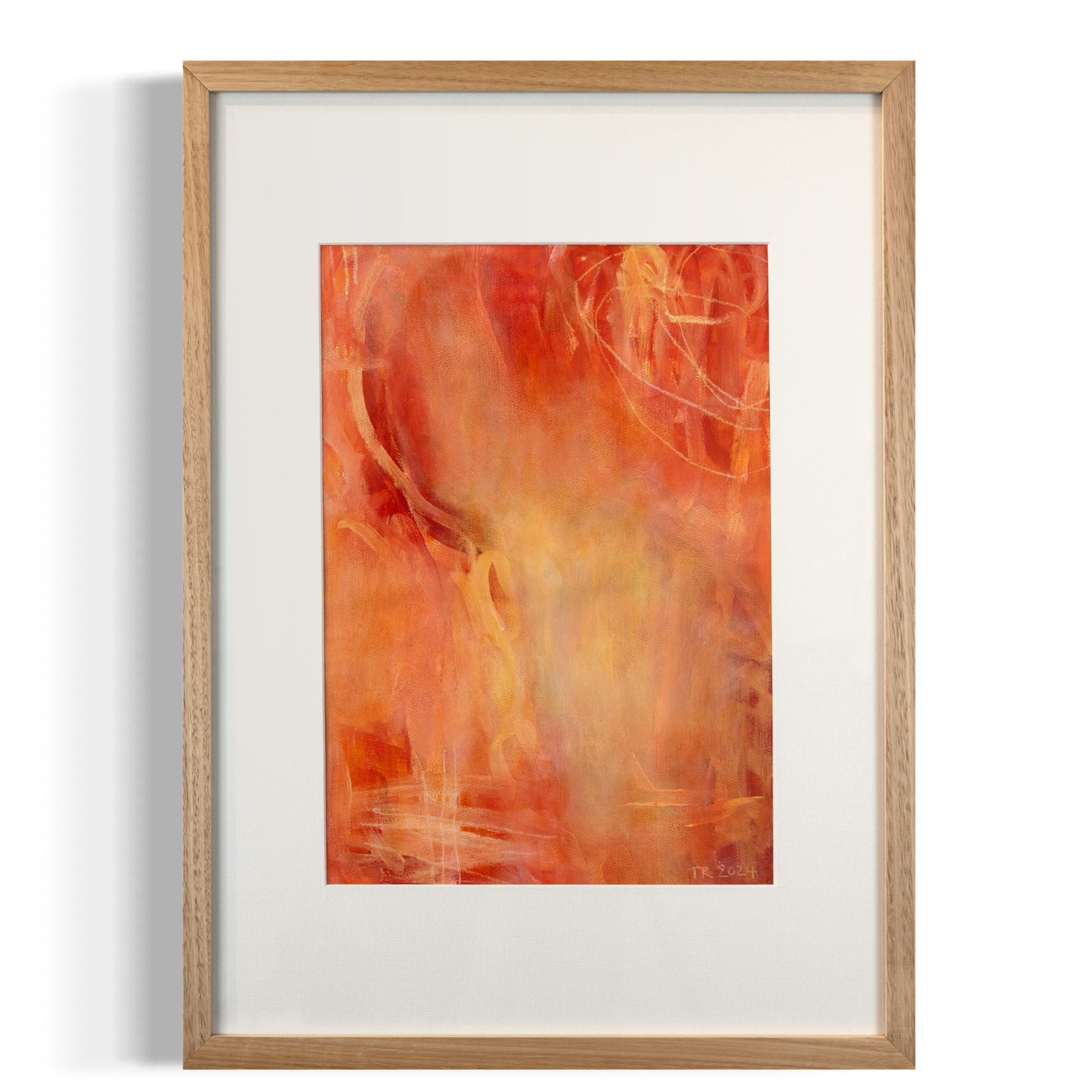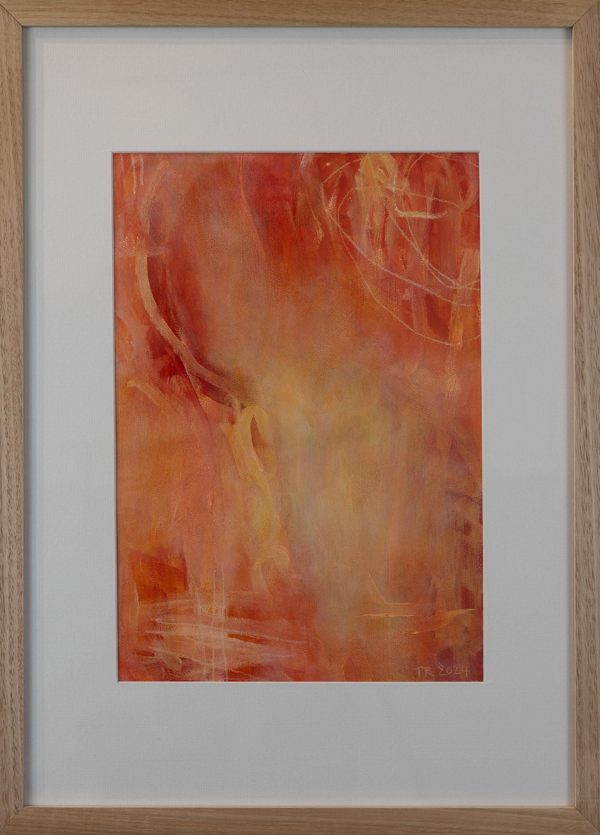 'Refraction' (2024) is an original acrylic and mixed media painting on 300gsm archival paper by Tamzin Rasmussen. It is framed under glass with an attractive Victorian Ash frame and white mount.