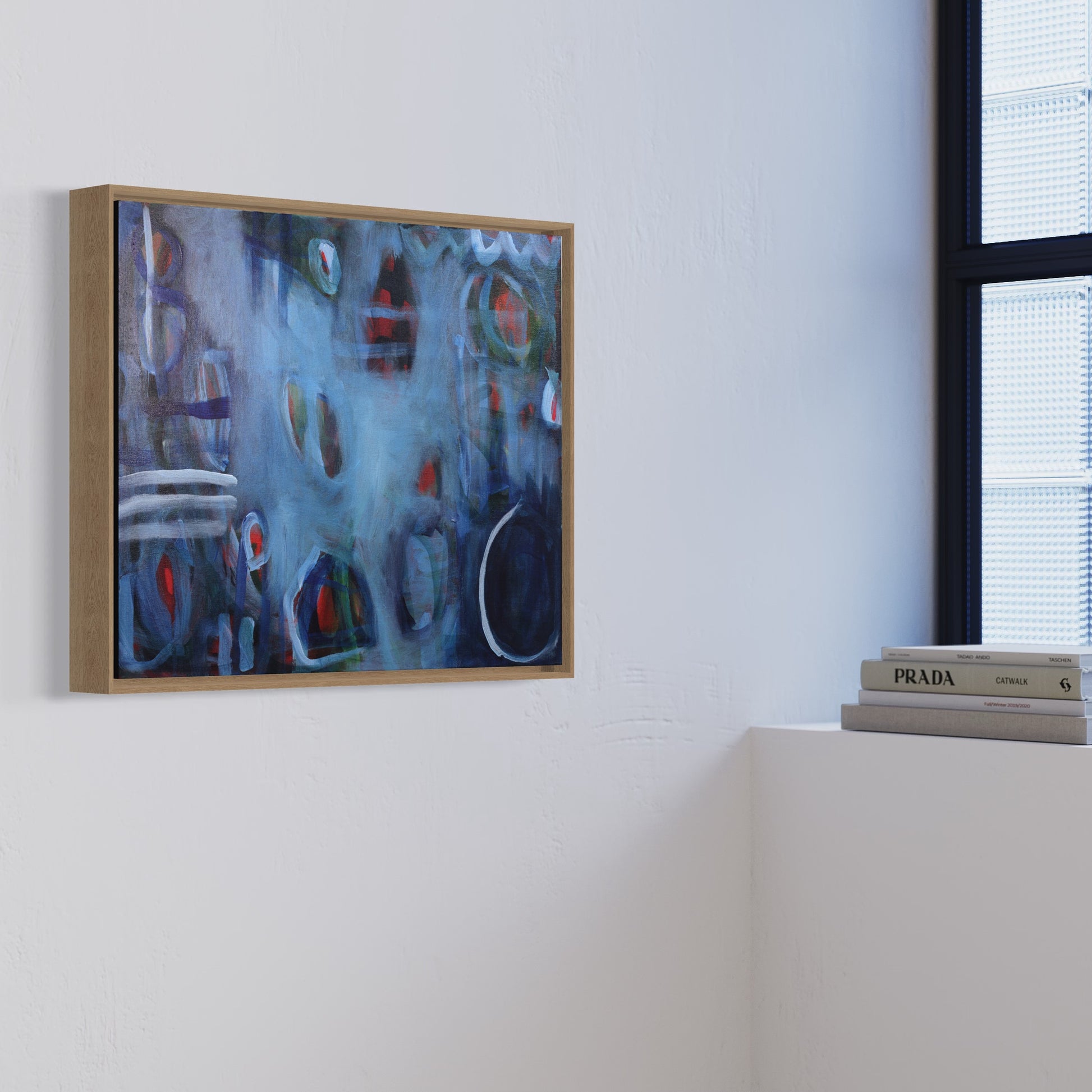 H 40cm x W 50.5cm x D 3.8cm, float framed in oak, ready to hang.