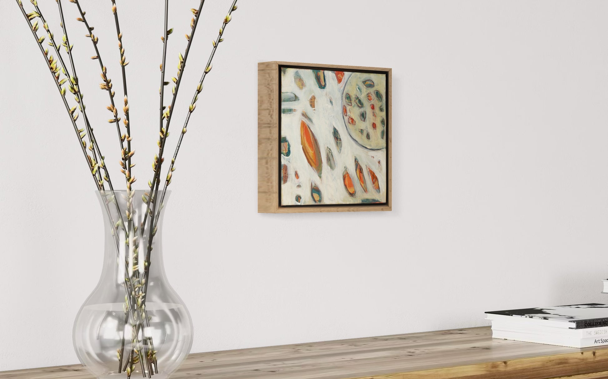 H 28cm x W 28cm x D 5.5cm framed size, ready to hang.