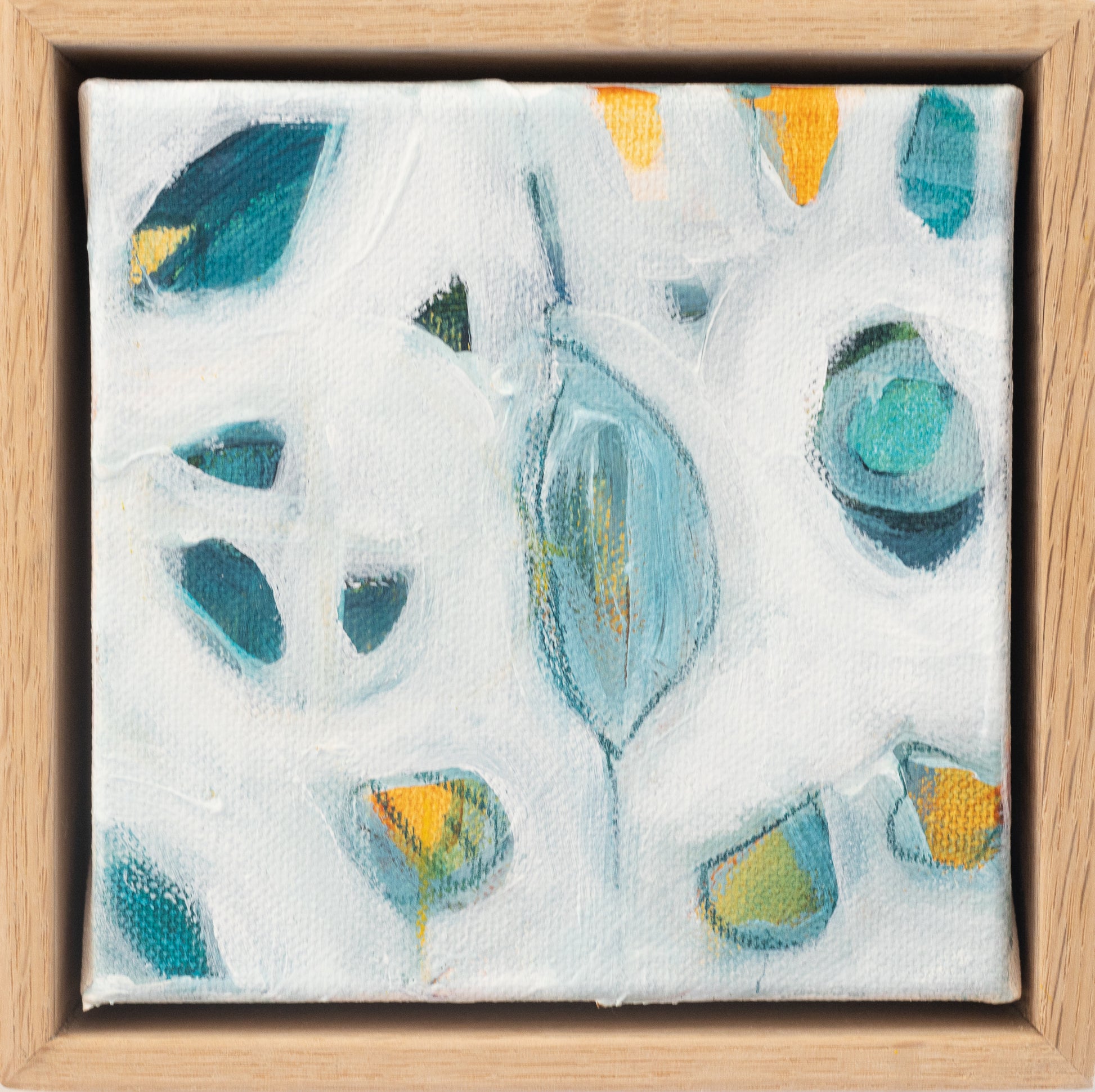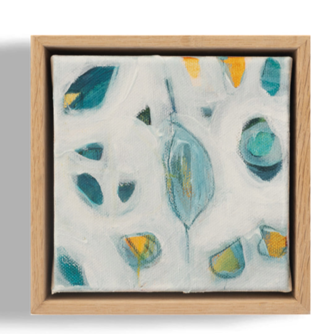 'Submersion 2' (2025) is an original acrylic and mixed media painting on stretched canvas by Tamzin Rasmussen. The painting incudes a simple but elegant float frame made from American Oak