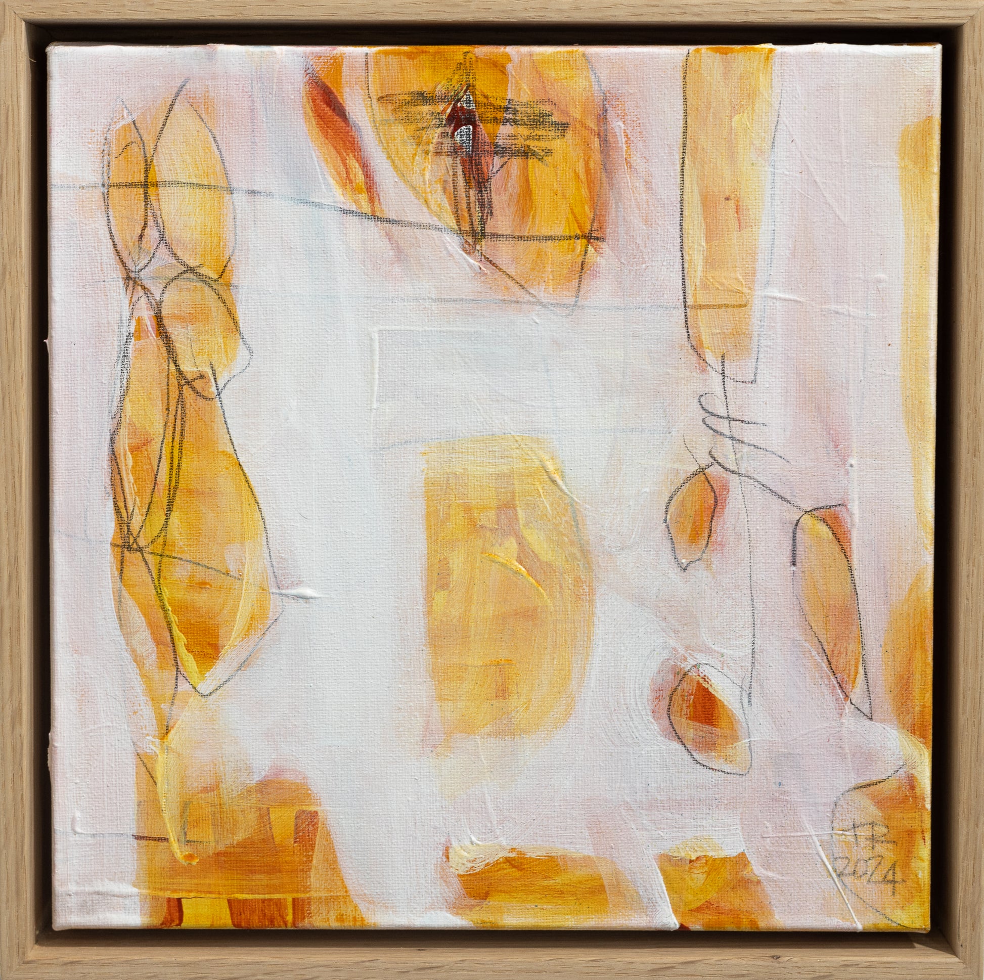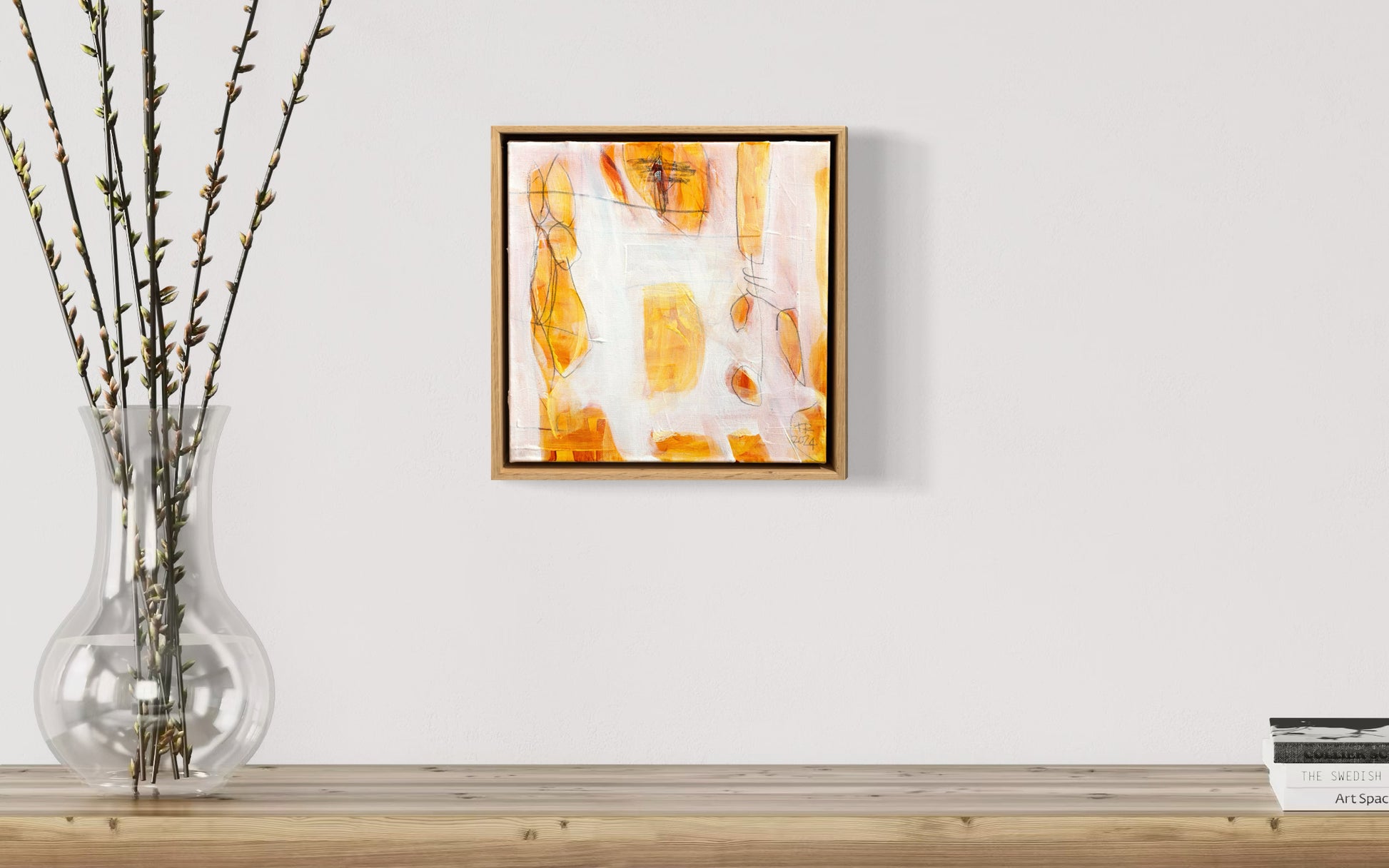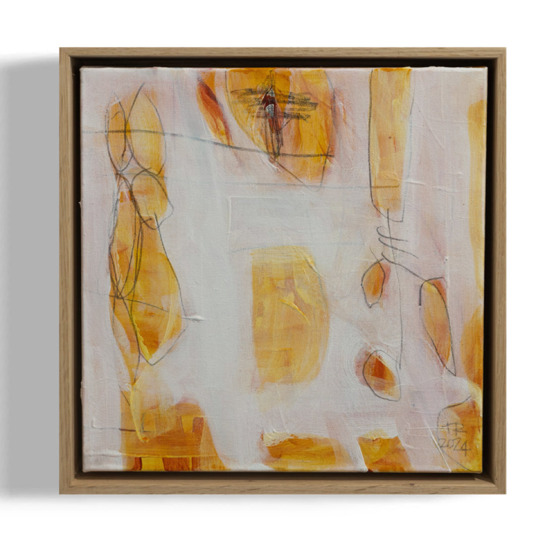 'Touch 3' (2024) is an original acrylic and mixed media painting on stretched canvas by Tamzin Rasmussen. The painting incudes a simple but elegant float frame made from American Oak