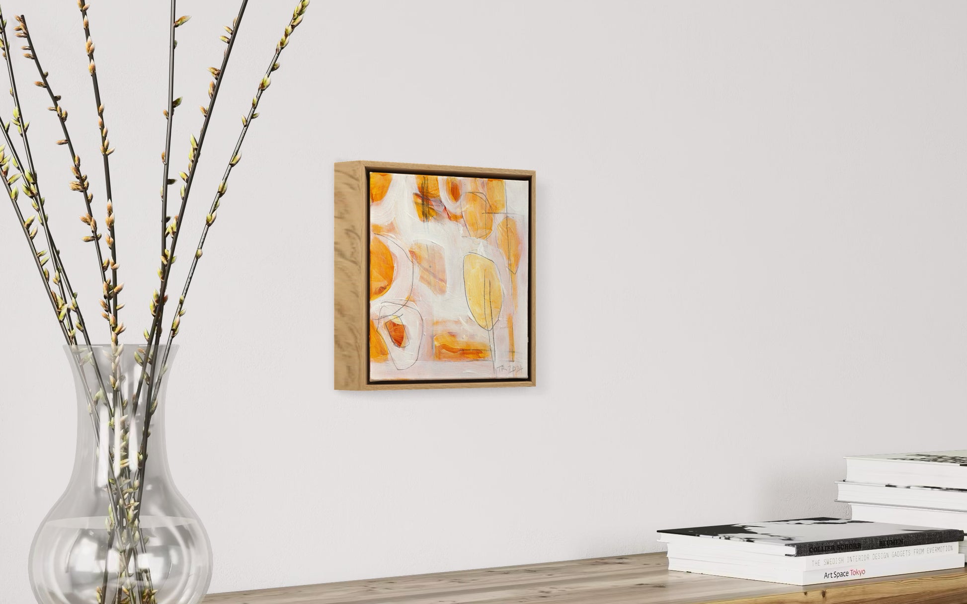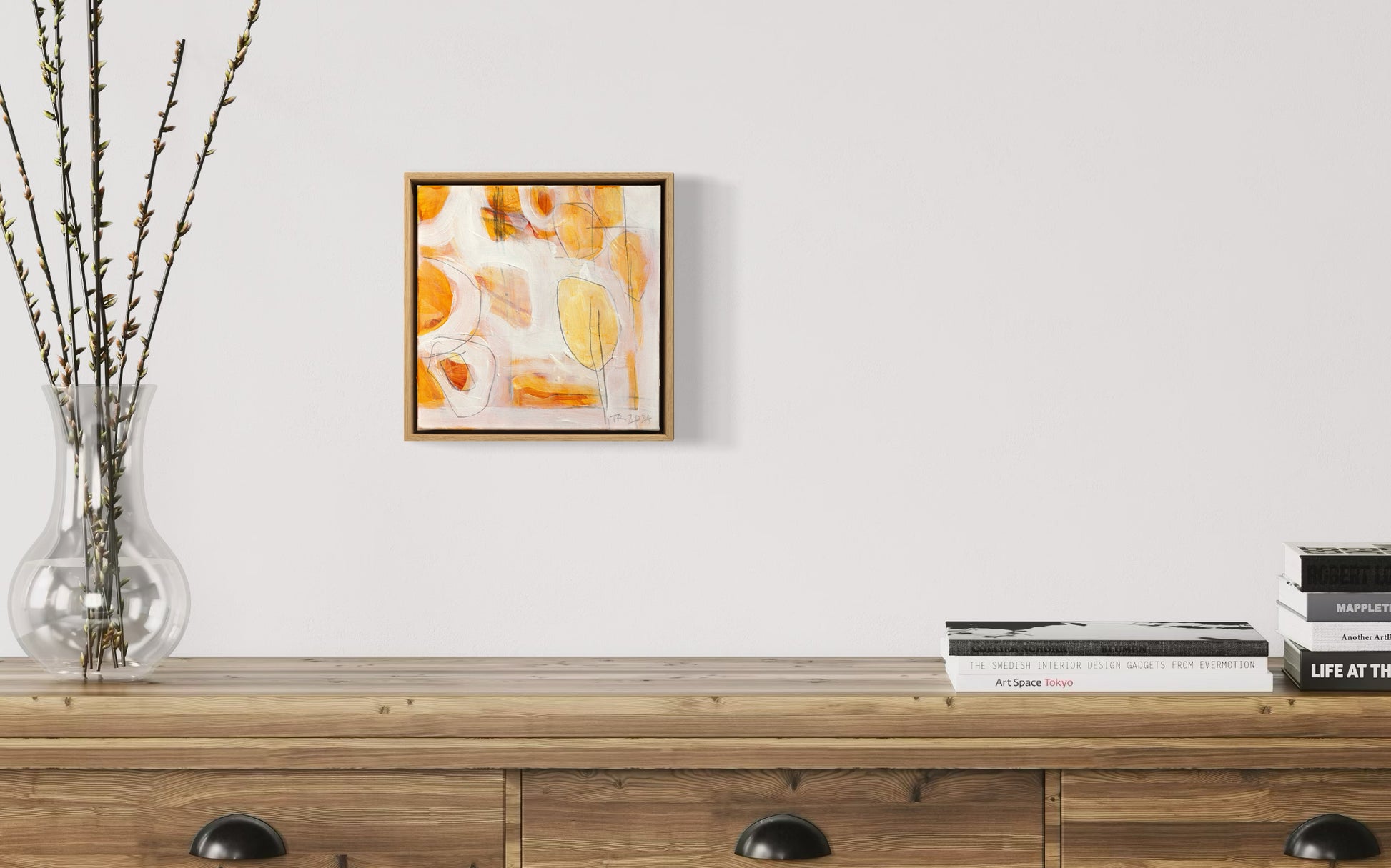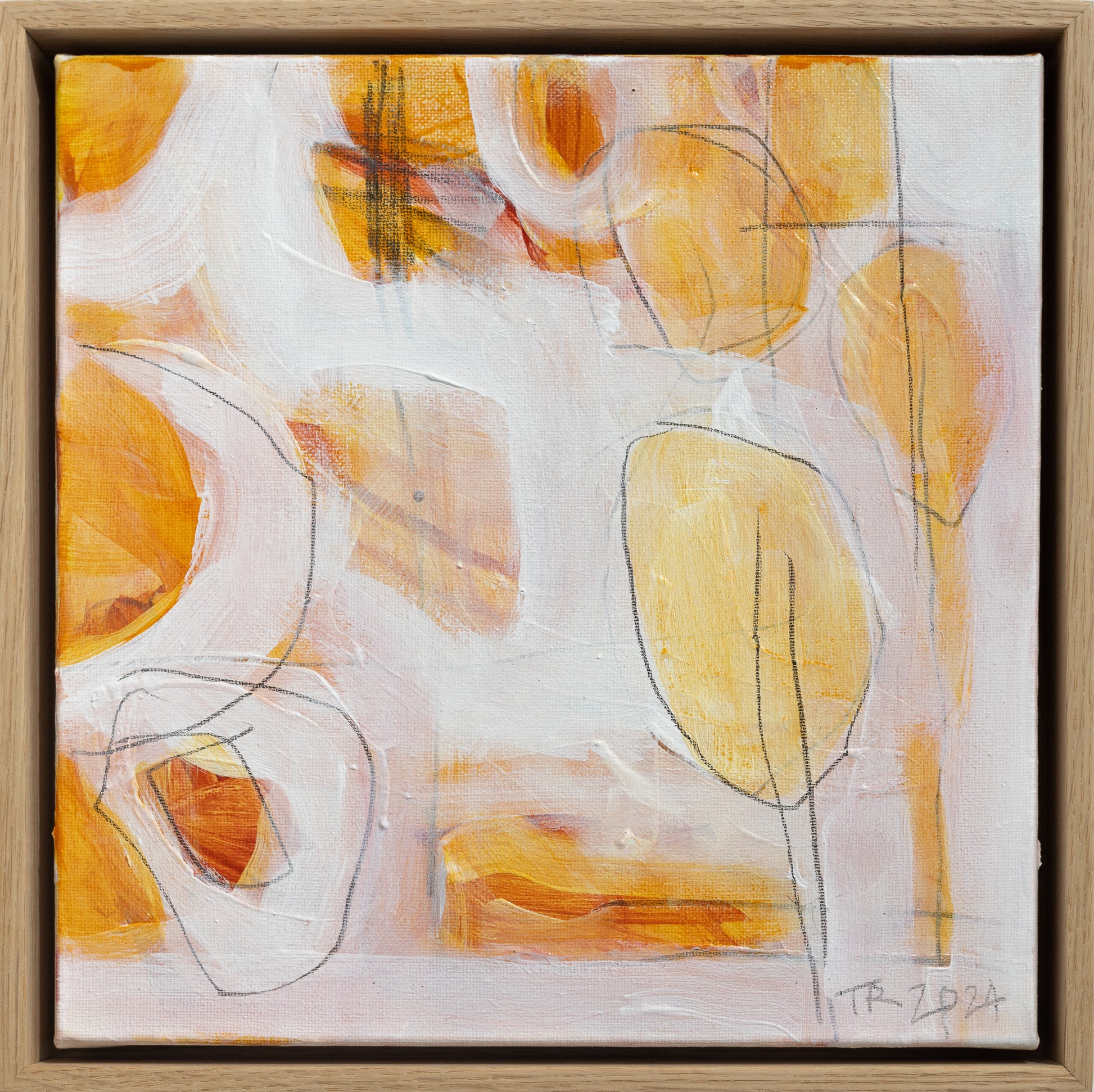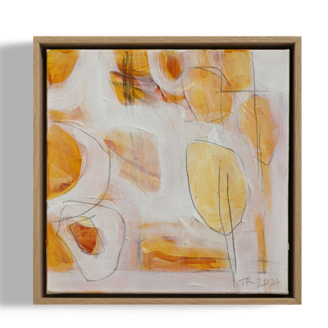 'Touch 4' (2024) is an original acrylic and mixed media painting on stretched canvas by Tamzin Rasmussen. The painting incudes a simple but elegant float frame made from American Oak