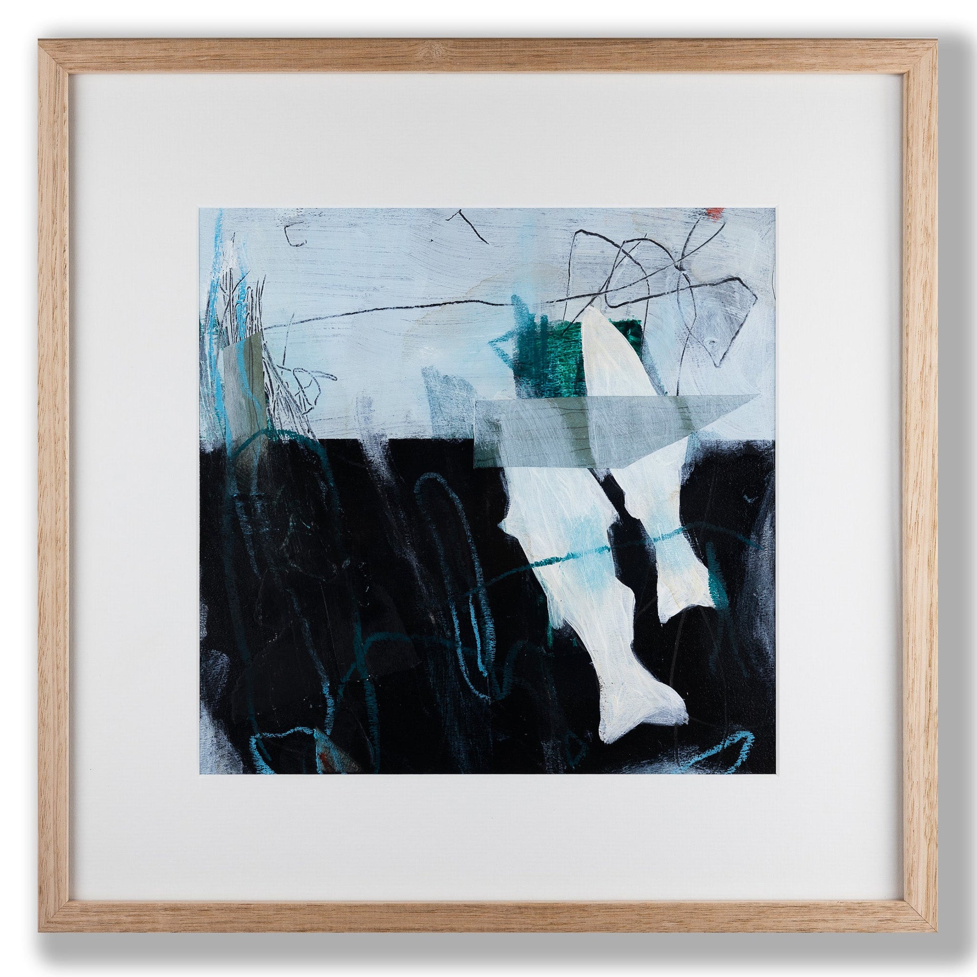 H 27cm x W 27cm, framed under glass with 5cm mat and oak frame, ready to hang.