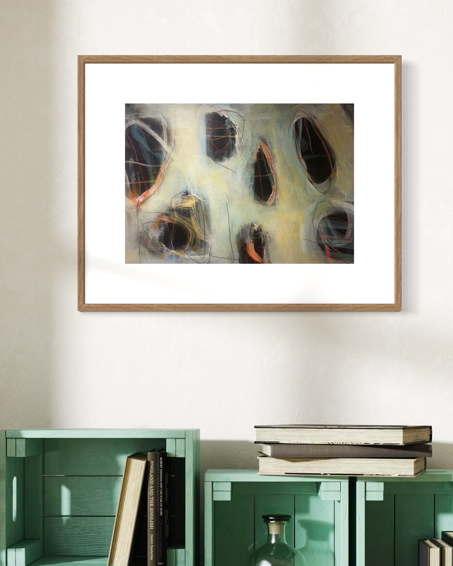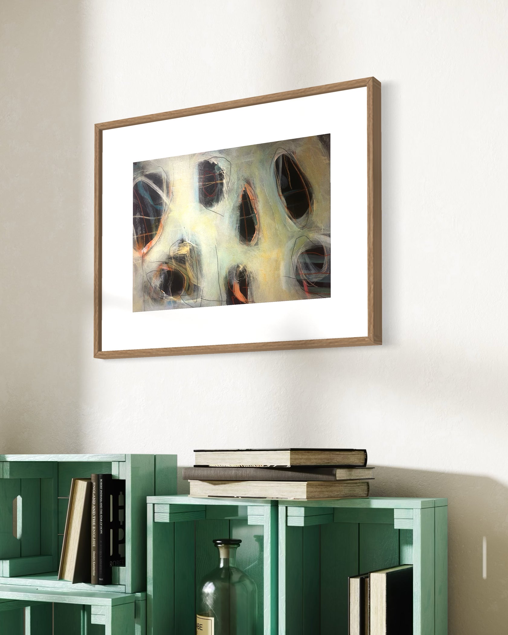 H 45cm x W 62.5cm x D 4cm framed size, ready to hang.